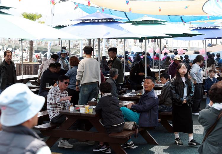 Áö³ 11ÀÏ ¸¶·®Ç× Áß¹æÆÄÁ¦ ÀÏ¿ø(°Áø±º ¸¶·®¸é ¹ÌÇ×·Î 152)¿¡¼ °³ÀåÇÑ ¡®2026³â ¸¶·®³îÅä¼ö»ê½ÃÀ塯Àº ù³¯ºÎÅÍ °ü±¤°´µéÀÇ ¹ß±æÀÌ À̾îÁö¸ç 5,100¿© ¸íÀÇ °ü±¤°´ÀÌ Çà»çÀåÀ» ã¾Æ ¼øÁ¶·Î¿î Ãâ¹ßÀ» º¸¿´´Ù.