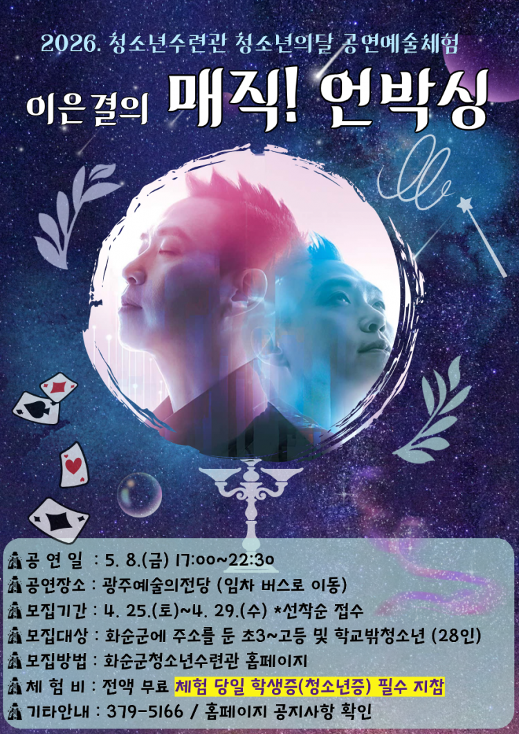 - ȯ»óÀûÀÎ ¸¶¼ú°ø¿¬ ¼±»ç... 4¿ù 25ÀÏ~4¿ù 29ÀÏ ½Åû¡¤Á¢¼ö -