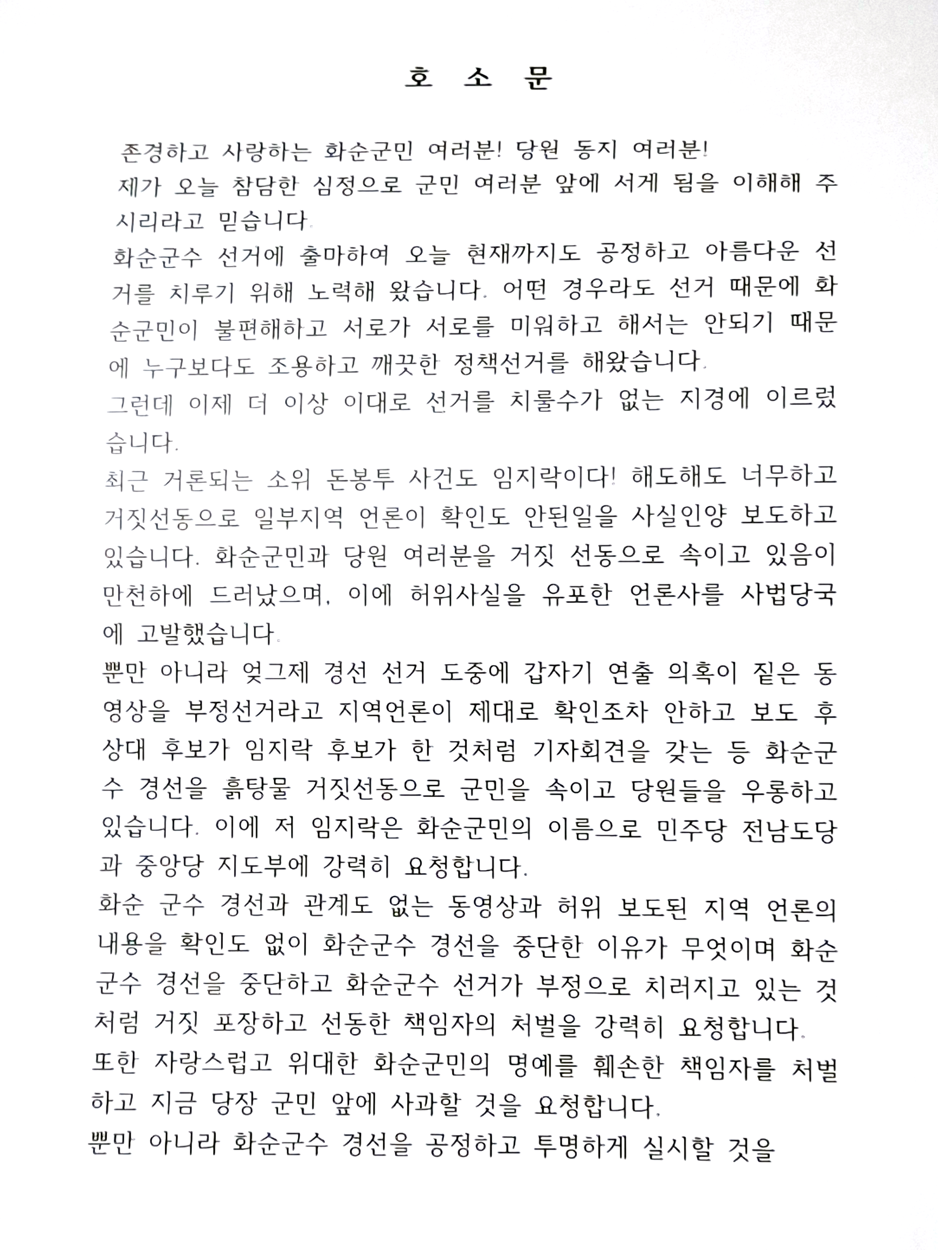 -"°æ¼±°ú ¹«°üÇÑ ¿µ»óÀÌ ºÎÁ¤¼±°Å·Î µÐ°©ÇØ À¯Æ÷µÇ¾î »ó´ë È帱îÁö ³ª¼ »ç½ÇÀÎ ¾ç ÁÖÀåÇϰí ÀÖ´Ù" ÀÌ´Â ±º¹ÎÀ» ±â¸¸ÇÏ°í °ÅÁþ¼±µ¿À¸·Î °ÇÑ ºñÆÇ