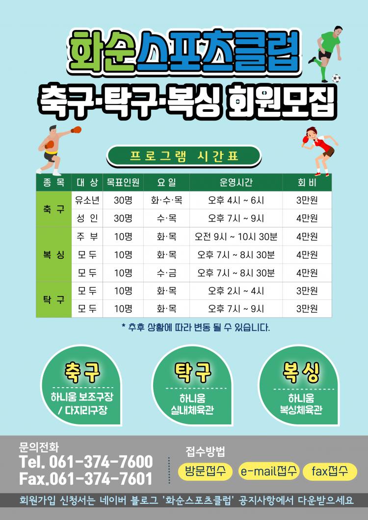 ȼø½ºÆ÷Ã÷Ŭ·´ ºí·Î±×(https://blog.naver.com/hwasunsc)¿¡¼ ½Åû¼¸¦ ³»·Á ¹Þ¾Æ ÇÏ´Ï¿ò½ºÆ÷Ã÷¼¾ÅÍ ³» ȼø½ºÆ÷Ã÷Ŭ·´ »ç¹«½ÇÀ» ¹æ¹®Çϰųª À̸ÞÀÏ(hwasunsc@naver.com), ÆÑ½º(061-374-7601)·Î ½ÅûÇÏ¸é µÈ´Ù.