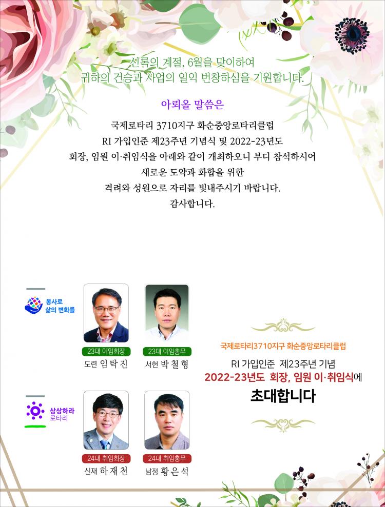 6.23(¸ñ)¿ÀÈÄ6½Ã ÇÏ´Ï¿ò¹®È½ºÆ÷Ã÷¼¾ÅÍ ¸¸¿¬È¦¿¡¼ ±¹Á¦·ÎŸ¸®È¼øÁ߾ӷΟ¸®Å¬·´ÀÌ RI°¡ÀÔÀÎÁØ Á¦23Áֳ⠱â³ä ¹× 2022-2023³âµµ ȸÀå,ÀÓ¿ø ÀÌ.ÃëÀÓ½ÄÀ» °®´Â´Ù.