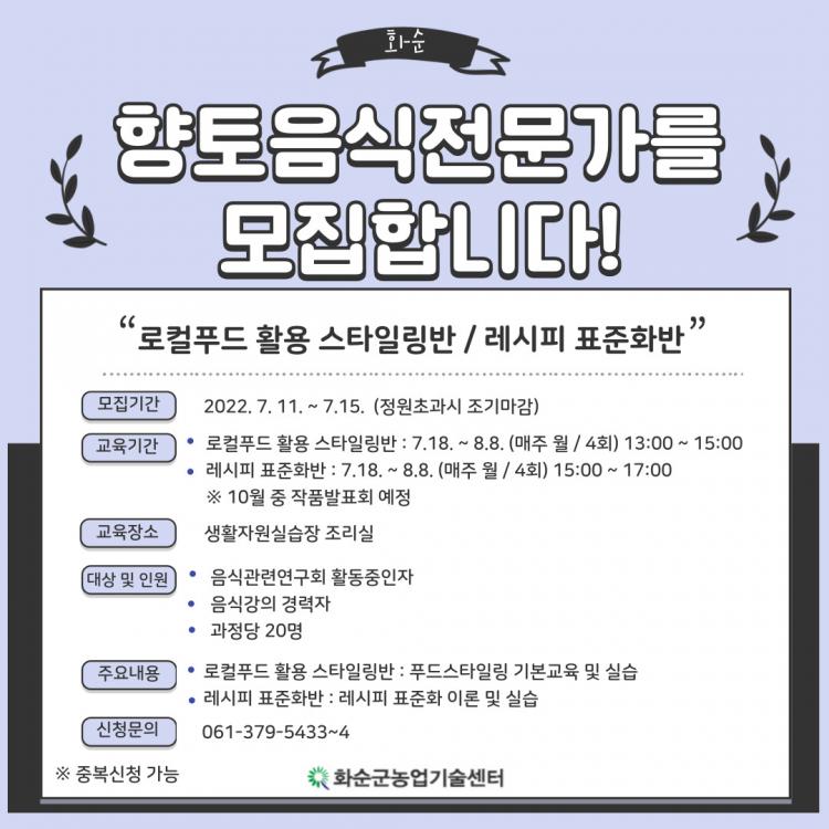 ȼø±º(±º¼ö ±¸º¹±Ô)ÀÌ 11ÀϺÎÅÍ È¼øÇâÅäÀ½½ÄÀü¹®°¡ 2°³ ±³À°°úÁ¤ ¼ö°»ýÀ» °úÁ¤ ´ç 20¸í¾¿ ¸ðÁýÇÑ´Ù.