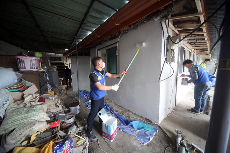 | 6ÀÏ ÀÔÁÖ¸¦ ¾ÕµÎ°í ¿Üº® ÆäÀÎÆ®Ä¥ ±¤°æ, ¿ÞÆí¿¡ °ø»ç·Î º¸°üÁßÀÎ °¡Àçµµ±¸µé |