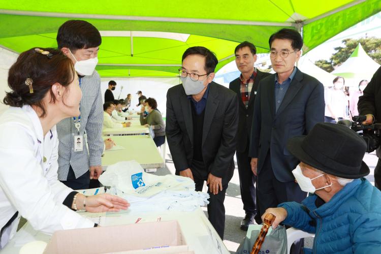 ¹Úö¿ø ȼø ºÎ±º¼öµµ ÀÇ·á ºÀ»ç ÇöÀåÀ» ã¾Æ ÁֹεéÀÇ ¾ÈºÎ¸¦ »ìÇÇ°í ºÀ»ç¿¡ ³ª¼± ÀÇ·áÁø¿¡°Ô °í¸¶¿òÀ» Ç¥Çß´Ù.