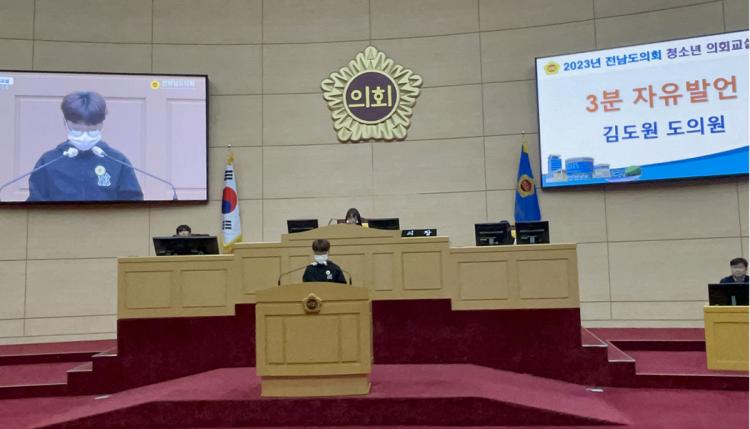 Àü³²µµÀÇȸ ÀÓÁö¶ô ÀÇ¿ø(´õºÒ¾î¹ÎÁÖ´ç, ȼø1)Àº Áö³ 2ÀÏ µµÀÇȸ º»È¸ÀÇÀå¿¡¼ ¿¸° ¡®2023³â û¼Ò³â ÀÇȸ±³½Ç¡¯¿¡ Âü¿©ÇÑ È¼øÃʵîÇб³¡¤¿©¼ö ºÎ¿µÃʵîÇб³ ÇлýµéÀ» ȯ¿µÇÏ°í °Ý·ÁÇß´Ù.