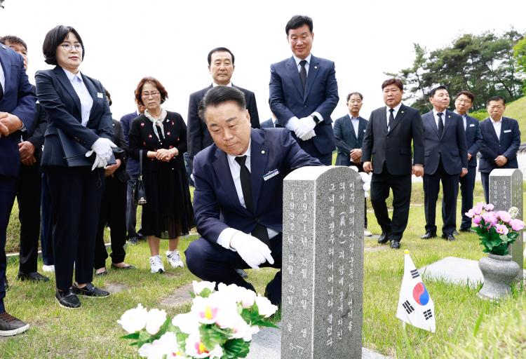 Ã߸ðž¿¡ ÇåÈ¿Í ºÐÇâÀ» ¸¶Ä£ ÈÄ ¹¦¿ª¿¡ ¾ÈÀåµÈ 59±âÀÇ È¼ø Ãâ½Å ¾ÈÀåÀÚ Áß È«³²¼ø º¯È£»ç¿Í Á¶°æ³², Çà¹æºÒ¸íÀÚ ÃÖ¿µÈ¯ ¼±»ýÀÇ ¹¦Áö¸¦ ¹æ¹®ÇÏ¿´´Ù. ÀαǺ¯È£»çÀÌÀÚ Àαǿ°¡¿´´ø È«³²¼ø º¯È£»ç´Â 5.18 ´ç½Ã ±ººÎµ¶ÀçÀÇ Åº¾Ð¿¡ ¸Â¼ ¹ÎÁÖȿÀ» À̲ö Àι°ÀÌ´Ù.