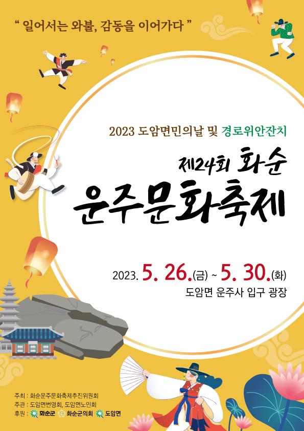 2023³â µµ¾Ï¸é¹ÎÀÇ ³¯°ú °æ·ÎÀ§¾ÈÀÜÄ¡¸¦ º´ÇàÇÑ Á¦24ȸ ȼø¿îÁÖ¹®ÈÃàÁ¦°¡ 5¿ù 26ÀϺÎÅÍ 30ÀϱîÁö õºÒõž ½Åºñ°¡ ±êµç ȼø±º µµ¾Ï¸é ¿îÁÖ»ç ÀÏ¿ø¿¡¼ ¡°ÀϾ ¿ÍºÒ, °¨µ¿À» À̾´Ù¡±¶ó´Â ÁÖÁ¦·Î ¿¸°´Ù.