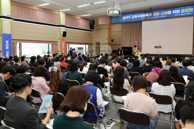 ¹Úº´±Ô ±¤»ê±¸Ã»Àå, ÀÌÁ¤¼± ±¤Áֽñ³À°°¨, ¹ÎÇü¹è ±¤»ê±¸À» ±¹È¸ÀÇ¿øÀ» ºñ·ÔÇØ Áö¿ª ±³¿ø, Çкθð, Àü¹®°¡, ÁֹΠµî 200¿© ¸íÀÌ Âü¼®ÇÑ °¡¿îµ¥, ±¤»ê±¸ ±³À°±¹Á¦ÈƯ±¸ ÁöÁ¤ ÃßÁø ¹è°æ ¹× Çʿ伺, ÇâÈÄ ºñÀüÀ» °øÀ¯Çϰí, ÀǰßÀ» ¼ö·ÅÇÏ´Â ½Ã°£À» °¡Á³´Ù.