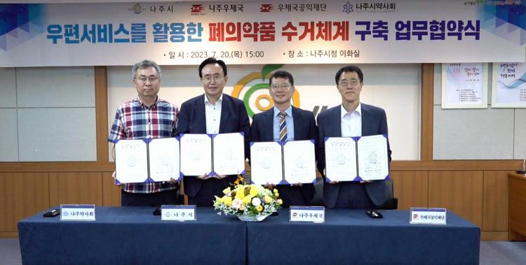 ³ªÁÖ½Ã(½ÃÀå À±º´ÅÂ)´Â Àü³¯ ½Ãû»ç ÀÌȽǿ¡¼ ¡®ÆóÀǾàǰ ȸ¼ö ¿ìÆí¼ºñ½º ½Ã¹ü»ç¾÷¡¯ ÃßÁøÀ» À§ÇÑ ³ªÁÖ¿ìü±¹, ¿ìü±¹°øÀÍÀç´Ü, ³ªÁֽþà»çȸ¿Í 4ÀÚ °£ ¾÷¹«Çù¾àÀ» ü°áÇß´Ù°í 21ÀÏ ¹àÇû´Ù.
