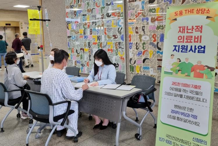 [ȼø±Û·Î¹ú´º½º] ȼøÀü³²´ëÇб³º´¿øÀÌ 8¿ù 31ÀÏ º´¿ø 1Ãþ ·Îºñ¿¡¼ ±¹¹Î°Ç°º¸Çè°ø´Ü¿¡¼ ½ÃÇà ÁßÀÎ ¡®Àç³Àû ÀÇ·áºñ Áö¿øÁ¦µµ¡¯¸¦ È«º¸Çϱâ À§ÇÑ »ó´ã¼Ò¸¦ ¿î¿µÇß´Ù°í 1ÀÏ ¹àÇû´Ù.