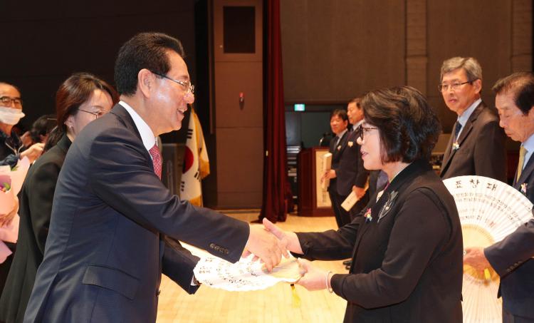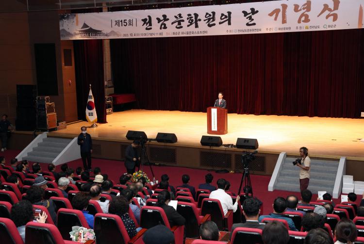 ±è¿µ·Ï Àü¶ó³²µµÁö»ç°¡ 4ÀÏ ¿ÀÀü ȼøÇÏ´Ï¿ò¹®È½ºÆ÷Ã÷¼¾ÅÍ¿¡¼ ¿¸° Á¦15ȸ Àü³²¹®È¿øÀÇ ³¯ ±â³ä½Ä¿¡¼ Àü³² ¹®È¹ßÀü¿¡ ±â¿©ÇÑ À¯°øÀÚ¿¡ ´ëÇÑ µµÁö»ç ǥâÆÐ¸¦ ¼ö¿©Çϰí ÀÖ´Ù