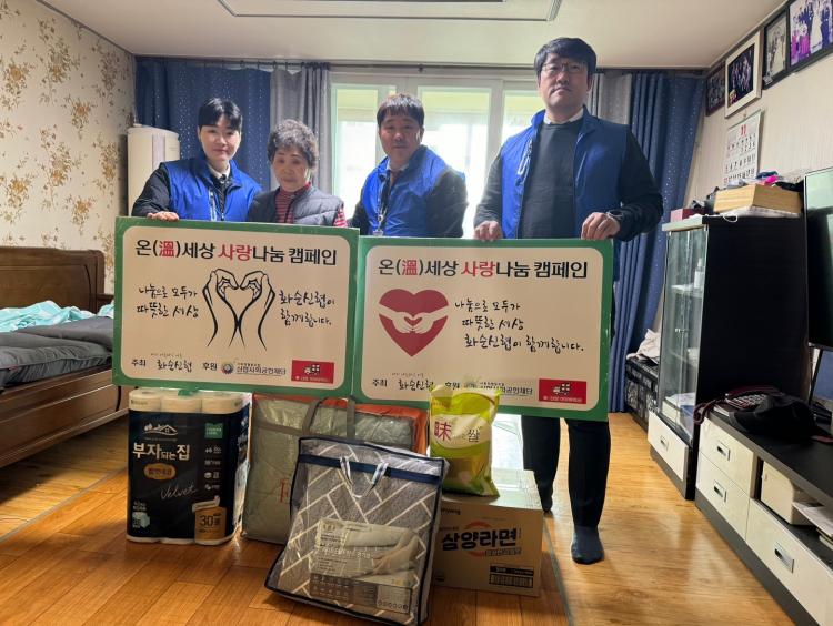 ȼø½ÅÇù(ÀÌ»çÀå ¹ÚÈ«·¡, »ó¹« ±è±âÈÆ)Àº 11¿ù15ÀÏ(¼ö)~11¿ù23ÀÏ(¸ñ)±îÁö ȼø±º ÀÏ´ë¿¡¼ ¾î·Á¿î ÀÌ¿ô 30°¡Á¤¿¡ (Àü±âÀåÆÇ, À̺Ò, ¶ó¸é, ÈÀåÁö, ½Ò, ½Ä¿ëÀ¯ µî) µû¶æÇÑ °Ü¿ï³ª±â¸¦ À§ÇÑ ³¹æ¿ëǰ°ú ¼Ò¿Ü°èÃþ¿¡ ¾îºÎ¹Ù¹Ú½º(¶ó¸é,ÇÞ¹Ý,½Ä¿ëÀ¯,°¢Á¾ ÅëÁ¶¸²,°í¹«Àå°©,ÇÖÆÑ,¹°Æ¼½´,Ä¡¾à,Ä©¼Öµî) ¹°Ç°À» °¡Á¤¿¡ Àü´ÞÇÏ´Â ºÀ»çȰµ¿À» ÆîÃÆ´Ù.