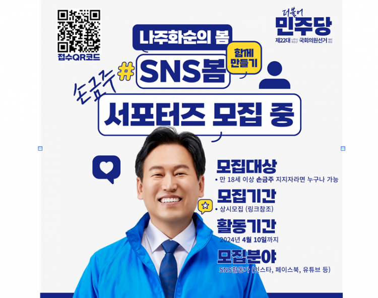 ¼Õ ¿¹ºñÈ帴 ¡°»õ·Î¿î ³ªÁÖȼøÀÇ º½À» ÇÔ²² ¸¸µé SNSº½ ¼Æ÷ÅÍÁ ¸ðÁýÇÑ´Ù¡±¸ç ¡°³ªÁÖȼøÀÇ Èñ¸ÁÀ» ¸¸µé°íÀÚ ÇÏ´Â »ç¶÷ ´©±¸³ª ¼Æ÷ÅÍÁî Ȱµ¿¿¡ Âü¿©°¡ °¡´ÉÇÏ´Ù¡±°í ¹àÈ÷¸ç ¡°±¸±ÛÆûÀ¸·Î ¼º¸í¡¤¿¬¶ô󡤰ü½É ºÐ¾ß µîÀ» ÀÛ¼ºÇؼ º¸³»¸é µÈ´Ù¡±°í ¼³¸íÇß´Ù.