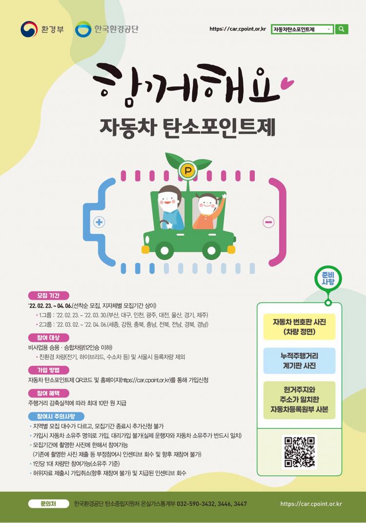 Âü¿©¸¦ ¿øÇÏ´Â ¿îÀüÀÚ´Â ÀÚµ¿Â÷ ź¼ÒÆ÷ÀÎÆ®Á¦ ´©¸®Áý(https://car.cpoint.or.kr/)¿¡¼ ȸ¿øÀ¸·Î °¡ÀÔÇÏ¸é µÈ´Ù. ȸ¿ø°¡ÀÔ ¿Ï·á ÈÄ ÀÚµ¿Â÷ ¹øÈ£ÆÇ »çÁø, ÁÖÇà°Å¸® °è±âÆÇ »çÁø, ÀÚµ¿Â÷µî·Ï¿øºÎ¸¦ ÁõºùÀÚ·á·Î Á¦ÃâÇØ¾ß ÇÑ´Ù.