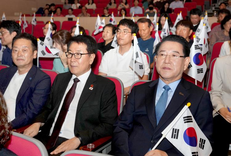 ±è¿µ·Ï Àü¶ó³²µµÁö»ç°¡ 11ÀÏ µµÃ» ±è´ëÁß°´ç¿¡¼ ±¤º¹È¸¿ø ¹× µµ¹Îµé°ú ±¤º¹ 80ÁÖ³âÀ» ¸Â¾Æ µ¶¸³±º Á¤½Å°ú ¾Ö±¹¡¤¾ÖÁ·ÀÇ °¡Ä¡°øÀ¯¸¦ ÅëÇØ µµ¹Î ÈÇÕ ¹× °øÁ÷ÀڷμÀÇ »ç¸í°¨°ú °øµ¿Ã¼Àû Ã¥ÀÓ ÀǽÄÀ» °íÃëÇϰíÀÚ »ó¿µµÈ ´ÙÅ¥¸àÅ͸® ¿µÈ ¡®µ¶¸³±º: ³¡³ªÁö ¾ÊÀº ÀüÀÀ» °ü¶÷Çϰí ÀÖ´Ù.
