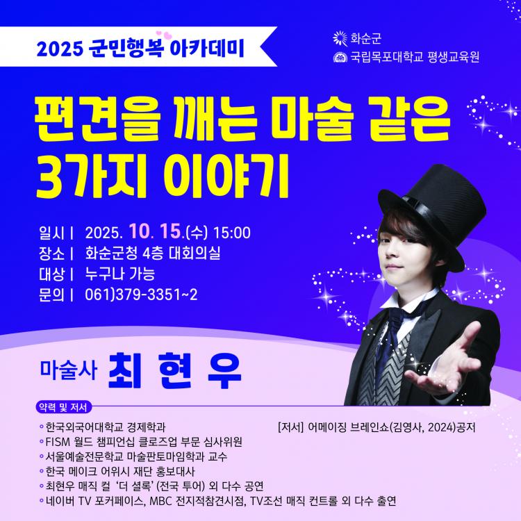 À̹ø °¿¬¿¡´Â ±¹³» ÃÖ°íÀÇ ¸¶¼ú»ç ÃÖÇö¿ì°¡ °¿¬ÀÚ·Î ³ª¼±´Ù. ÃÖÇö¿ì ¸¶¼ú»ç´Â ¼¼°è¸¶¼úÇùȸ(FISM) Ŭ·ÎÁî¾÷ ºÎ¹® ½É»çÀ§¿øÀ» ¿ªÀÓÇßÀ¸¸ç, ¡®ÃÖÇö¿ì ¸ÅÁ÷ Äà ´õ ¼È·Ï¡¯ Àü±¹Åõ¾î °ø¿¬°ú ´Ù¾çÇÑ ¹æ¼Û ÇÁ·Î±×·¥ Ã⿬À» ÅëÇØ ´ëÁß¿¡°Ô ¸¶¼úÀÇ ¸Å·ÂÀ» ³Î¸® ¾Ë·Á¿Â Àι°ÀÌ´Ù.