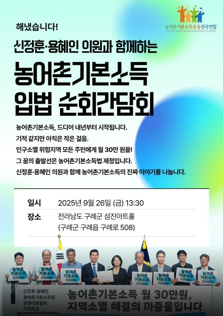 ❍ Áö³ 8 ¿ù 26 ÀÏ ½ÅÁ¤ÈÆ ÀÇ¿ø°ú ¿ëÇýÀÎ ÀÇ¿øÀº °øµ¿À¸·Î ³ó¾îÃ̱⺻¼Òµæ¹ýÀ» ¹ßÀÇÇß´Ù . À̾î 9 ¿ù 12 ÀÏ ±¹È¸¿¡¼´Â ±âº»¼ÒµæÇѱ¹³×Æ®¿öÅ© , ³ó¾îÃ̱⺻¼Òµæ¿îµ¿Àü±¹¿¬ÇÕ , »ç´Ü¹ýÀÎ ±âº»»çȸ , Àü±¹¾î¹ÎȸÃÑ¿¬¸Í µî ½Ã¹Î ¡¤ ³ó¹Î ´Üü°¡ Âü¿©ÇÑ ¡® ³ó¾îÃ̱⺻¼Òµæ ÀÔ¹ý ÃßÁø¿¬´ë ¡¯ °¡ Ãâ¹üÇÑ ¹Ù ÀÖ´Ù .