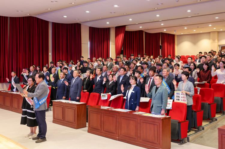 À̳¯ °áÀÇ´ëȸ¿¡´Â ¡®Áøµµ°í¼ÓöµµÃßÁøÀ§¿øÈ¸¡¯ À§¿øµé°ú ±â°ü ´ÜüÀå, ±º¹Î µî ¾à 300¸íÀÌ Âü¼®ÇØ ¡®Áøµµ °í¼ÓöµµÀÇ ±¹°¡°èȹ ¹Ý¿µ¡¯À» ÇâÇÑ °ÇÑ ÀÇÁö¸¦ ¸ð¾Ò´Ù.