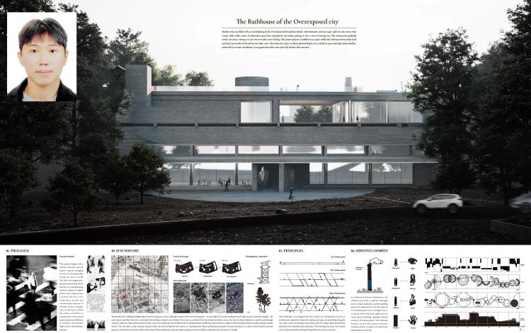 ±èÇöÁØ ÇлýÀÇ ÀÛǰ¡®The Bathhouse of the Overexposure City¡¯´Â ¼¿ï °³²±¸ Çе¿±Ù¸°°ø¿ø ³» µµ½ÉÇü °ø°ø¸ñ¿åÅÁÀ» Á¦¾ÈÇÑ ¼³°è·Î, Çö´ë µµ½Ã ¼Ó¿¡¼ ¡®¸Ó¹«¸§¡¯°ú ¡®´À¸²¡¯ÀÇ °ÇÃàÀû °¡Ä¡¸¦ ±¸ÇöÇß´Ù. ±×´Â ¸Þ¸¦·ÎÆþƼÀÇ Çö»óÇÐÀû öÇÐÀ» ¹ÙÅÁÀ¸·Î, »ç¿ëÀÚ°¡ °ø°£À» °Å´Ò¸ç ÀÚ½ÅÀÇ ¼Óµµ¿Í °¨°¢À» Á¶À²ÇÏ´Â ÀÇ·ÊÀû °ø°£À» âÁ¶Çß´Ù´Â Á¡¿¡¼ ³ôÀº Æò°¡¸¦ ¹Þ¾Ò´Ù.