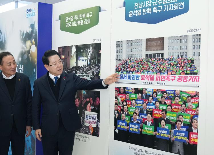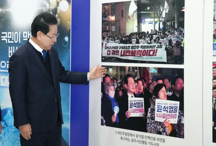 ±è¿µ·Ï Àü¶ó³²µµÁö»ç°¡ 3ÀÏ µµÃ» À±¼±µµÈ¦¿¡¼ ¡®±¹¹ÎÀÌ ¸·¾Æ³½ ºñ»ó°è¾ö ºûÀ¸·Î ÇÔ²² ÁöÄѳ½ À§´ëÇÑ ´ëÇѹα¹¡¯À̶õ ÁÖÁ¦·Î ¿¸° »çÁø Àü½ÃÀüÀ» °ü¶÷Çϰí ÀÖ´Ù.