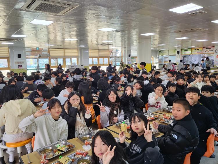 ȼøÃʵîÇб³(±³Àå Á¶¿µ·¡)´Â 12¿ù ¿¬¸»À» ¸Â¾Æ ÇлýµéÀ» ÀÀ¿øÇϱâ À§ÇØ ±Þ½Ä ¸Þ´º·Î ¶ø½ºÅÍ¿Í Àå¾î, ÇÑ¿ì µî Æ¯º°½ÄÀ» Á¦°øÇß´Ù.