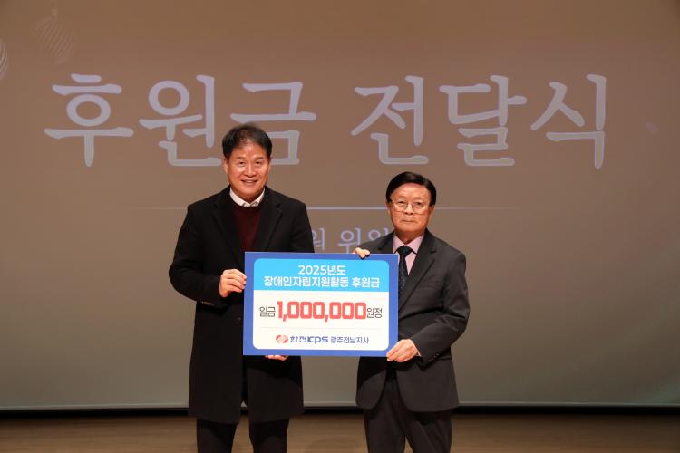 ÇÑÀüKPS ±¤ÁÖÀü³²Áö»ç(Áö»çÀå ÀÓÀç¼±)¿¡¼µµ ¹Ú·¡¿ø ³ëÁ¶À§¿øÀåÀ» ÅëÇØ ȼø»ç¶ûÀÇÁý¿¡ 100¸¸¿øÀÇ Àå¾ÖÀÎÀÚ¸³Áö¿øÈ°µ¿ ÈÄ¿ø±ÝÀ» Àü´ÞÇß´Ù. ¼ÕÀç¿î ´ëÇ¥´Â 'Àå¾ÖÀÎÀ» À§ÇØ ÀǹÌÀÖ´Â °÷¿¡ ¾²°Ú´Ù'°í ¸»Çß´Ù.