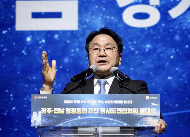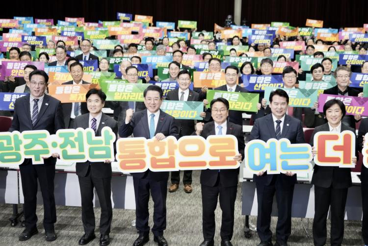 ±¤ÁÖÀü³² ÇàÁ¤ÅëÇÕÀ» ÁÖµµÇÒ ¹Î°£Çù·Â±â±¸°¡ ´éÀ» ¿Ã·È´Ù. ±¤ÁÖ¡¤Àü³²Áö¿ª °¢°è ´ëÇ¥ 500¸íÀÌ 320¸¸ ½Ãµµ¹ÎÀÇ ¶æ°ú ¿ª·®À» Çϳª·Î °áÁýÇØ ¿ì¸®³ª¶ó ÃÖÃÊ ÅëÇÕ ±¤¿ªÁö¹æÁ¤ºÎ ź»ý¿¡ ¾ÕÀå¼°Ú´Ù°í °áÀǸ¦ ´ÙÁ³´Ù.