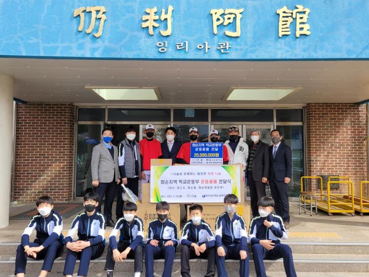 Áö¿ª±â¾÷ ¢ß´õ½¯(´ëÇ¥ ÀÓµµ¿¬)Àº È­¼ø±º¿¡ ¿îµ¿ºÎ°¡ ÀÖ´Â 3°³Çб³(È­¼øÃÊ, È­¼øÁß, È­¼øÁ¦ÀÏÁß)¿¡ 2,000¸¸¿ø »ó´çÀÇ ¿îµ¿ºÎ Çʼö ¿ëǰÀÎ ½ºÅ°·çÁî, ´ýº§, ¼ÅƲÄÛ µî 39Á¾ÀÇ ´Ù¾çÇÑ ¿îµ¿¿ëǰÀ» ±âÁõÇÏ¿´´Ù.