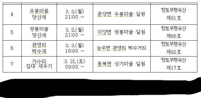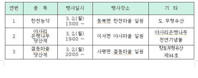 ÀüÅë ¹Î¼ÓÇà»ç´Â ȼø±º °ü³» 7°³ÀÇ ¸é¿¡¼ °¢°¢ °³ÃֵǸç, Çà»ç Á¾¸ñ°ú °³ÃÖ ³¯Â¥ µî ¼¼ºÎ ³»¿ëÀº ¾Æ·¡ Ç¥¸¦ Âü°íÇÏ¸é µÈ´Ù.