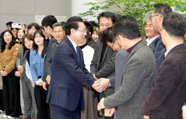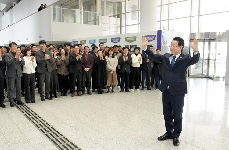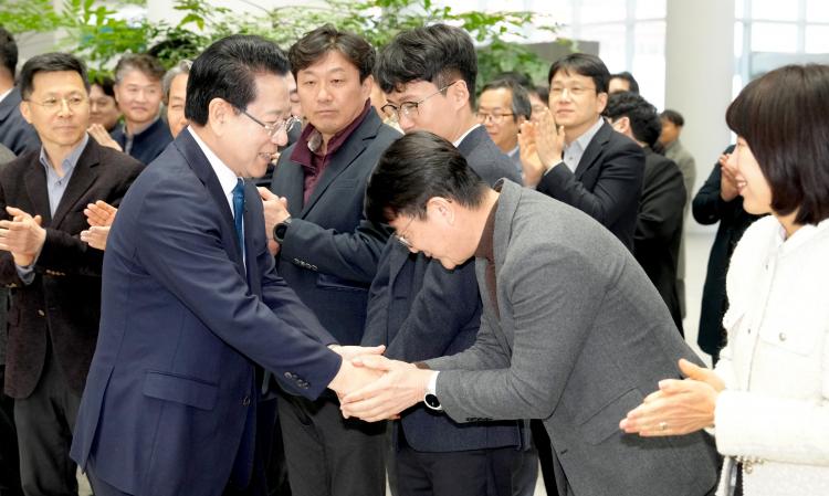 6¡¤3 Áö¹æ¼±°Å Àü³²±¤ÁÖÆ¯º°½ÃÀå¿¡ Ã⸶ÇÏ´Â ±è¿µ·Ï Àü¶ó³²µµÁö»ç°¡ 9ÀÏ ¿ÀÈÄ Àü³²µµÃ» 1Ãþ ·Îºñ¿¡¼ ȯ¼Û ³ª¿Â Á÷¿øµé°ú Àλ縦 ³ª´©°í ÀÖ´Ù.