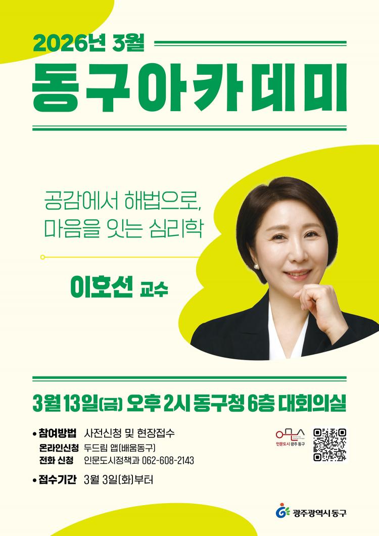 ±¤ÁÖ µ¿±¸´Â ´ëÇ¥ Æò»ýÇнÀ ÇÁ·Î±×·¥ÀÎ ¡®2026³â µ¿±¸ ¾ÆÄ«µ¥¹Ì¡¯°¡ ¿À´Â 13ÀÏ ÀÌÈ£¼± ¼þ½Ç»çÀ̹ö´ëÇб³ ±³¼öÀÇ °¿¬À» ½ÃÀÛÀ¸·Î ¿ÃÇØ ù ¹®À» ¿¬´Ù°í ¹àÇû´Ù.