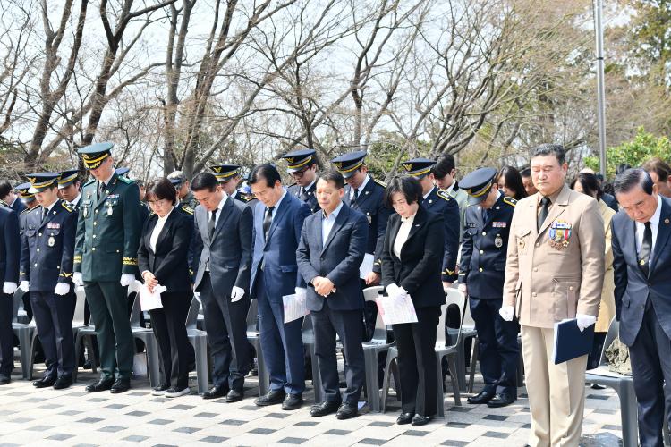 ·ÑÄÝ ¼ø¼¿¡¼´Â ±Ç¿µ½Å ´ëÀ§¿Í Çлý±º»ç±³À°´Ü È帻ý, ÇлýµéÀÌ Àü»ç À庴µéÀÇ À̸§À» ÇÑ ¸í¾¿ È£¸íÇϸç Ã߸ðÀÇ ¶æÀ» ´õÇß´Ù.
